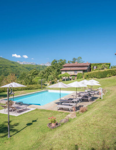 Vanaf de casine geniet je van een indrukwekkende sterrenhemel, stilte, het blaffen van een vos in de verte, een ree of damhert dat soms langsloopt, en het gezang van vogels. Centraal tussen de huisjes ligt een tweede zwembad met speeltuin op een natuurlijk terras, met wijds uitzicht over de vallei en de Apuaanse Alpen.