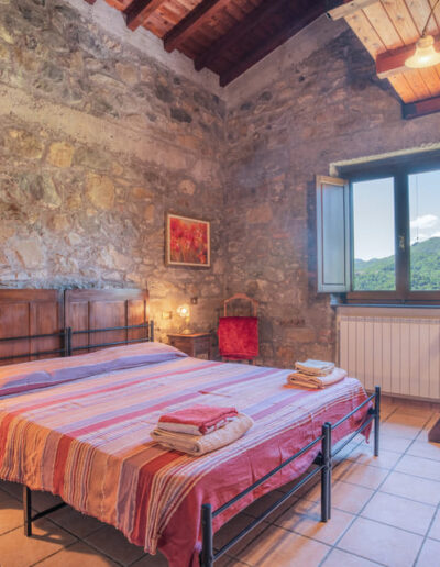 Zoek je nog meer rust en natuur, dan zijn er de ‘casine’: kleine huisjes verspreid over het terrein, tussen de weilanden, akkers en aan de rand van het kastanjebos. Ze zijn ontstaan uit oude metati (kastanjedrooghuizen), gereedschapsschuren en dierenverblijven, en met traditionele materialen omgebouwd tot eenvoudige maar sfeervolle vakantiehuisjes voor 2 tot 5 personen. Je hebt er: