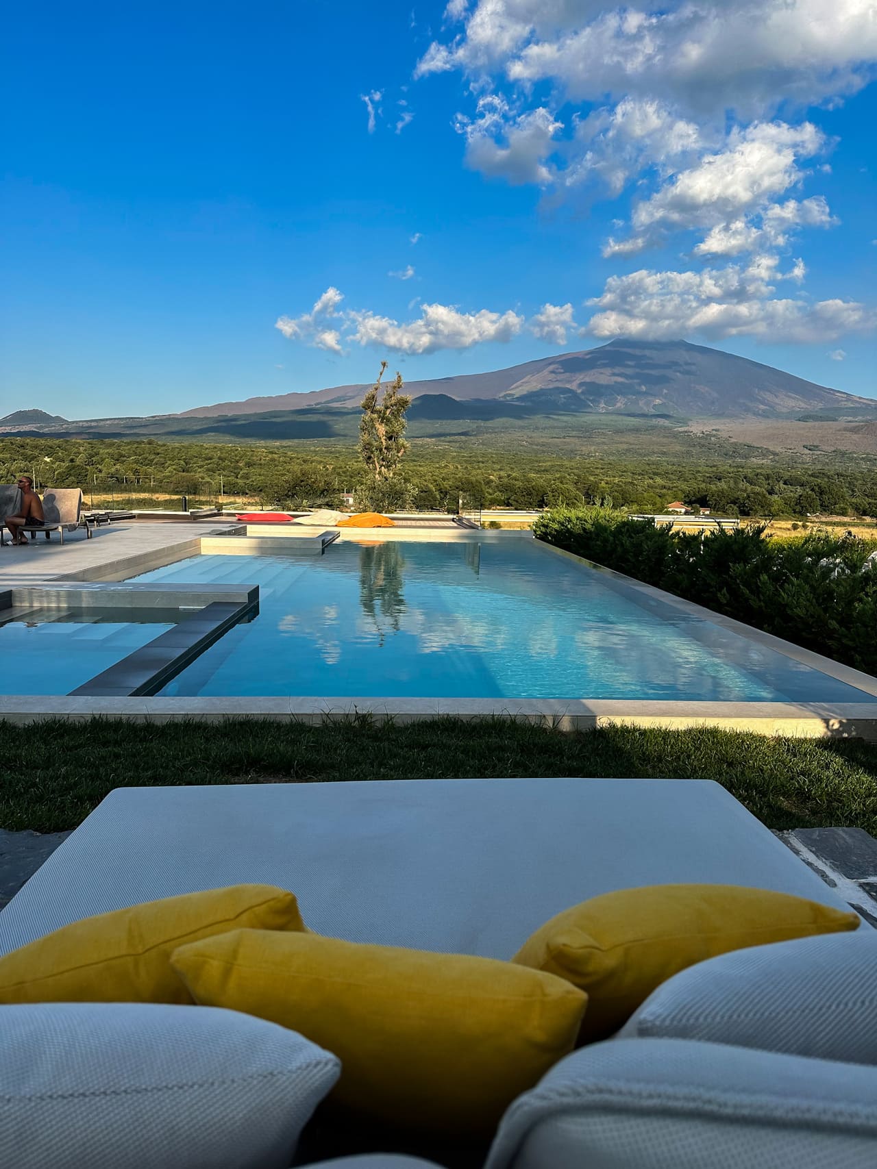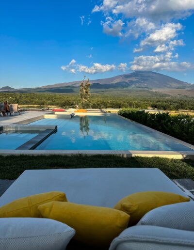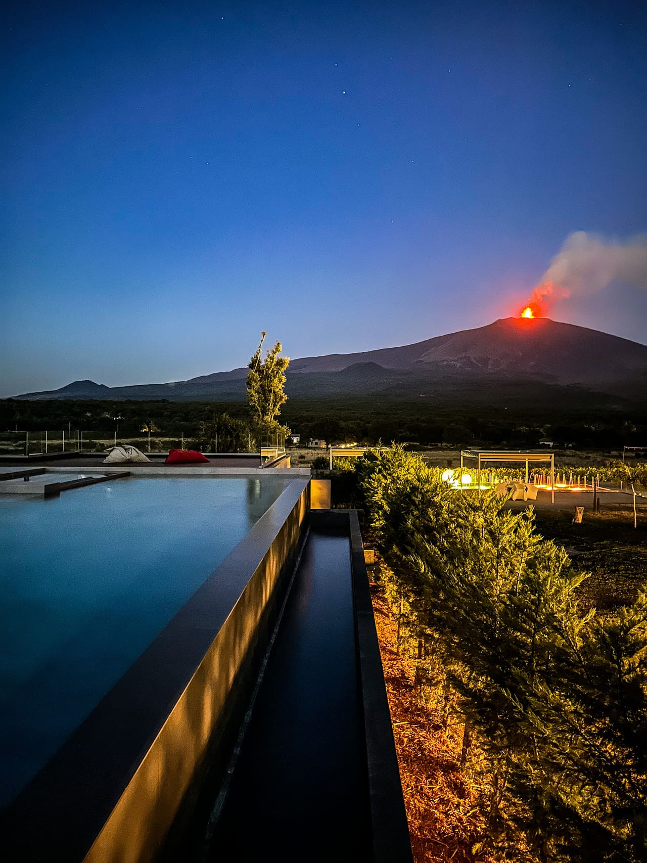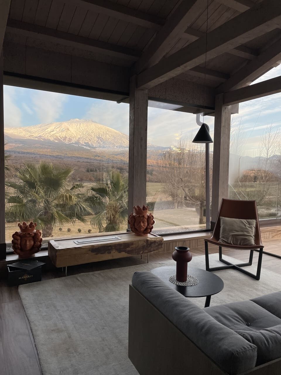 Dit is zo’n adres waar buiten en binnen in elkaar overlopen: glazen gevels, een tuin met waterpartijen en in de verte de Etna en de bossen richting de Nebrodi. Je komt voor rust, uitzicht en goed eten (in die volgorde). Het huis ademt persoonlijke aandacht; eigenaresse Irene Foti en haar team zetten bewust in op warmte en kwaliteit. Vanaf deze kant ervaar je de Etna op een andere manier, ver van het massatoerisme.