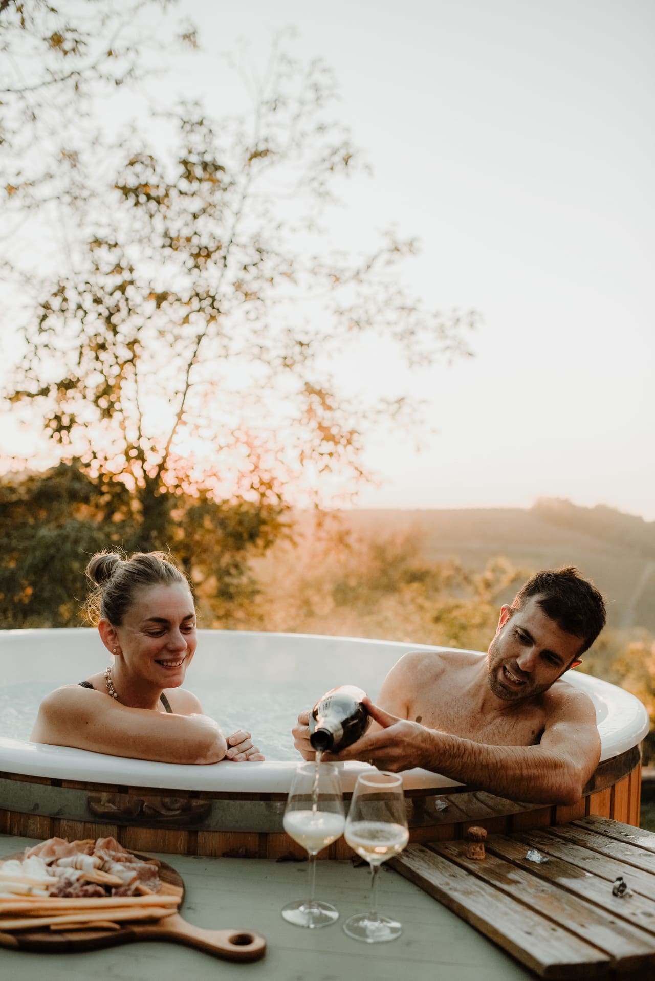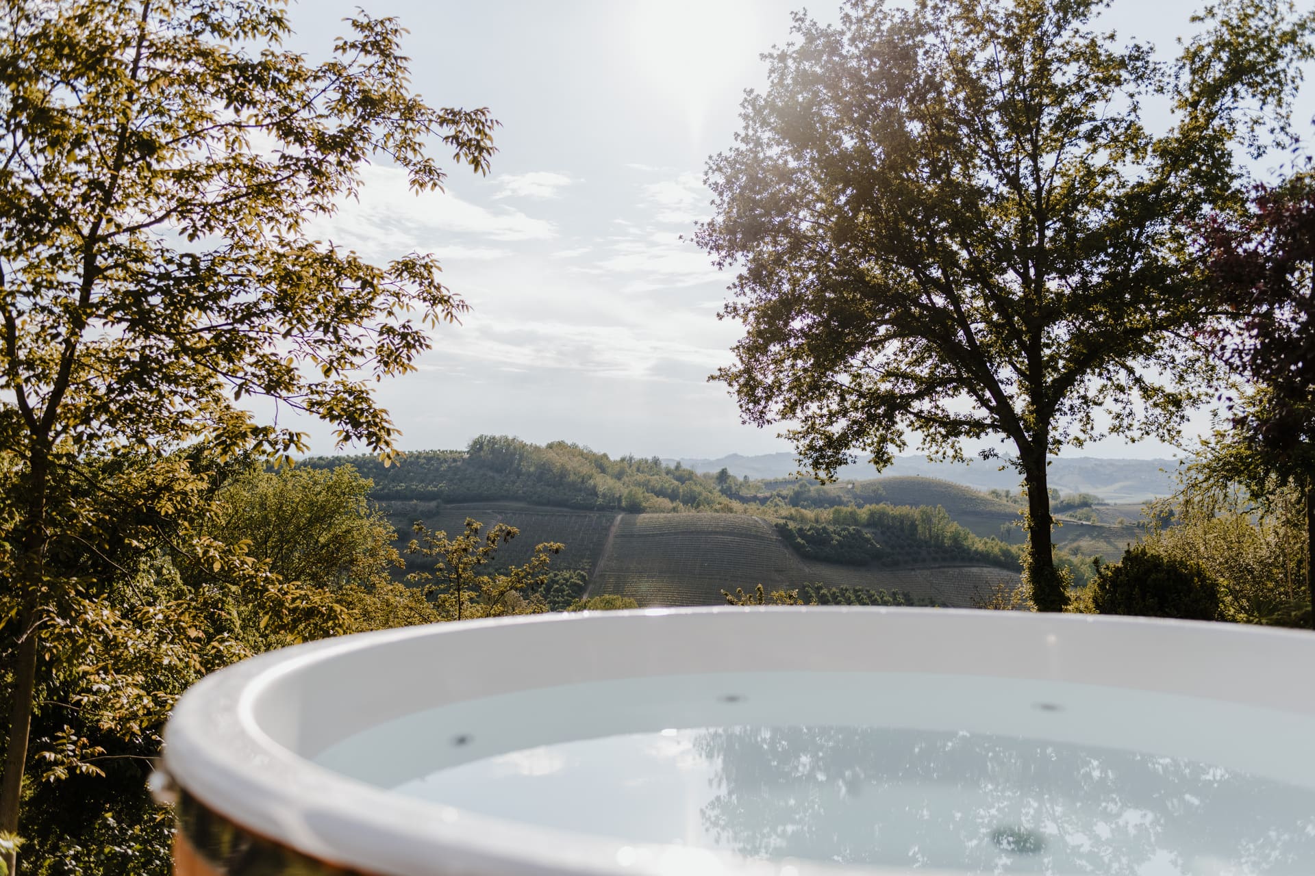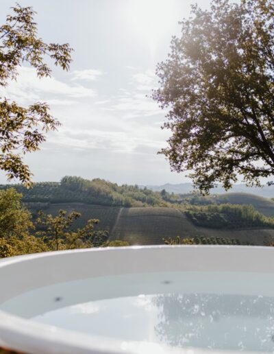 Na je rit of hike is de hot tub heerlijk: warm in lente/herfst, verkoelend in de zomer. Maak het extra bijzonder met een aperitief van lokale kazen en vleeswaren terwijl de zon achter de Roero-heuvels zakt (appartement Ulivo).