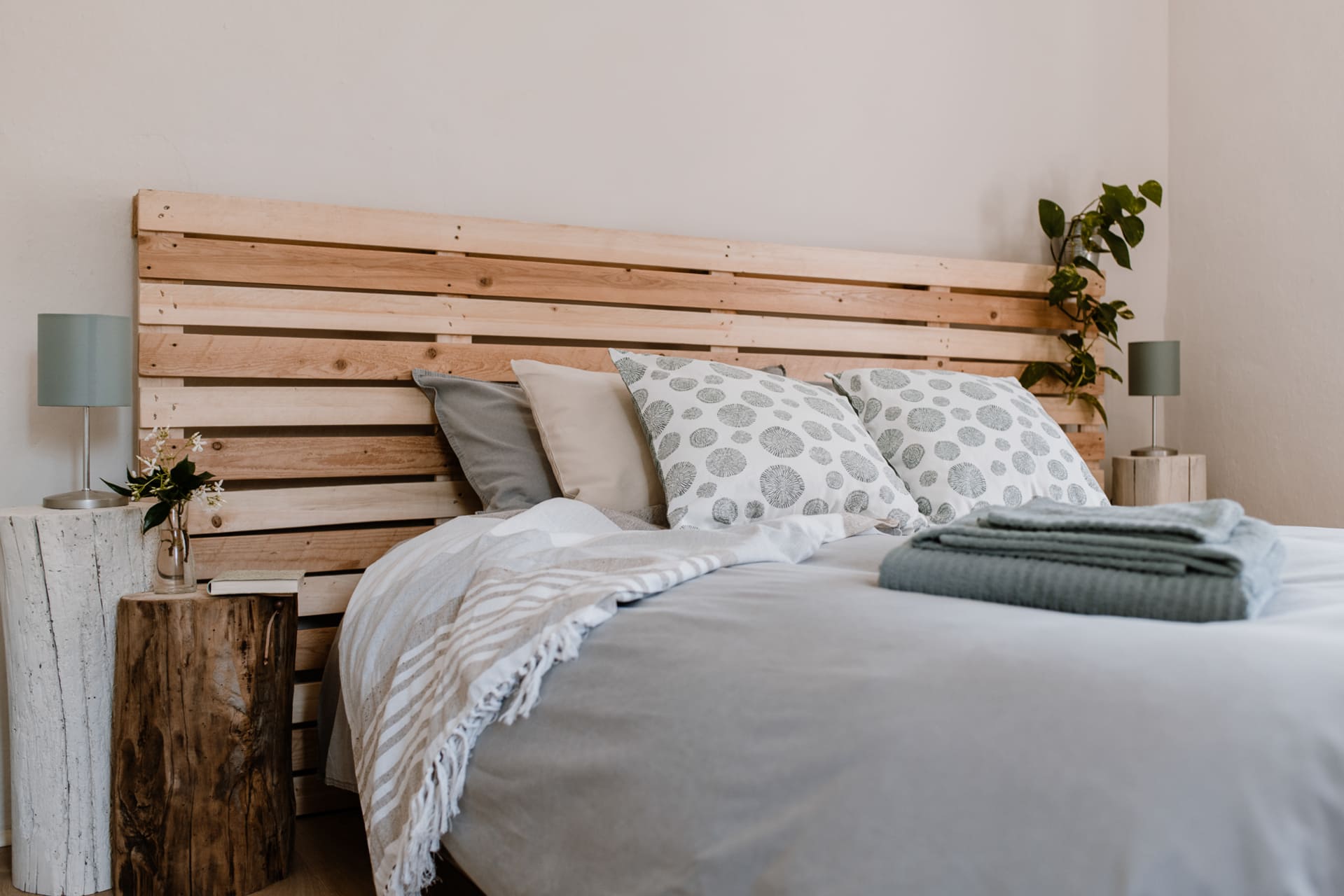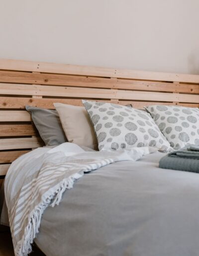 Stijl: eenvoudig, licht en comfortabel, ingericht met natuurlijke en gerecyclede materialen.