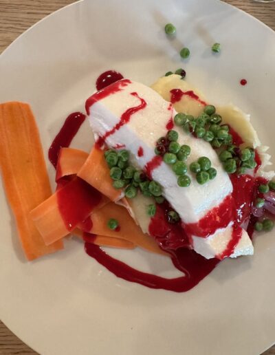 Het restaurant serveert lokale producten met een overdekt terras met zeezicht op de Anda Lighthouse. Lisbeth heeft een fantastische chef, gasten zijn unaniem over de kwaliteit van het diner. De keuken werkt met ingrediënten uit de directe omgeving: vis, wild, groenten en kruiden van het eiland.
