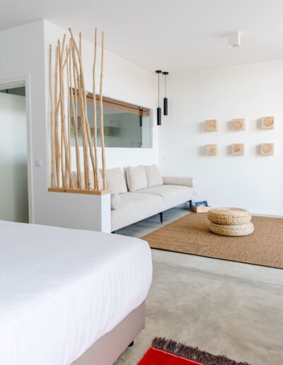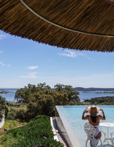 Alle 16 accommodaties hebben grote ramen die uitkijken op de natuur. De inrichting is licht en sober/modern met natuurlijke materialen. Alle accommodaties hebben een patio. Geen tv of andere afleiding, wel rust, vogels, wind door de kurkeiken. Je kunt hier ’s ochtends wakker worden met het eerste zonlicht over het Alqueva-meer.