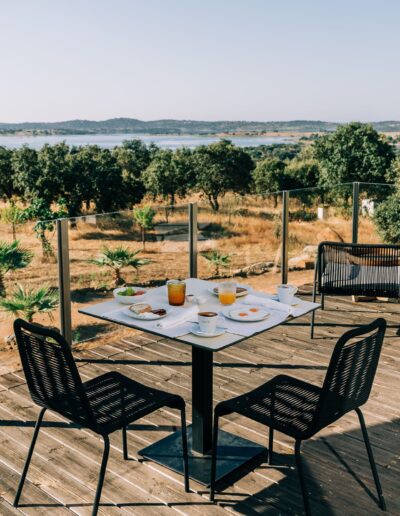 Het Skyscape restaurant op het domein serveert gerechten op basis van lokale producten. Denk aan Alentejaanse kaas, huisgemaakte jam, biologische wijnen, verse groenten. Je geniet hier van een prachtig uitzicht over het Alqueva-meer.