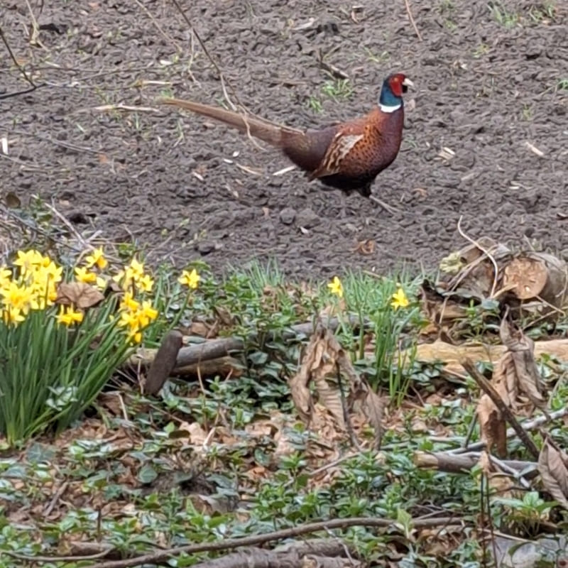 Behalve de groene en de bonte specht (Bob) nestelt er een buizerd, zie je ook eekhoorns, fazanten en hazen. Soms zie je in de verte een ree in de velden om het huis.