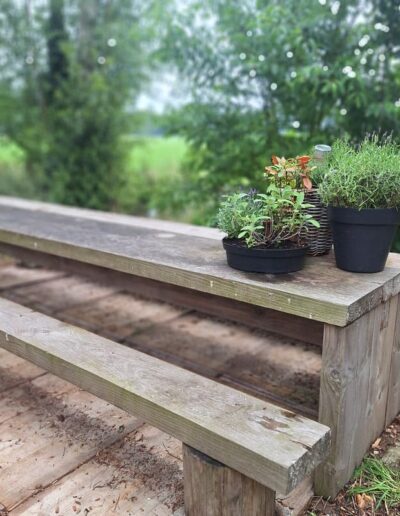 Hier logeer je bewust. Hemel-, bad- & keukenwater wordt opgevangen in een ondergronds reservoir waarmee de tuin wordt besproeid. Ook is de cabin aangesloten op een sceptic tank in plaats van het riool.