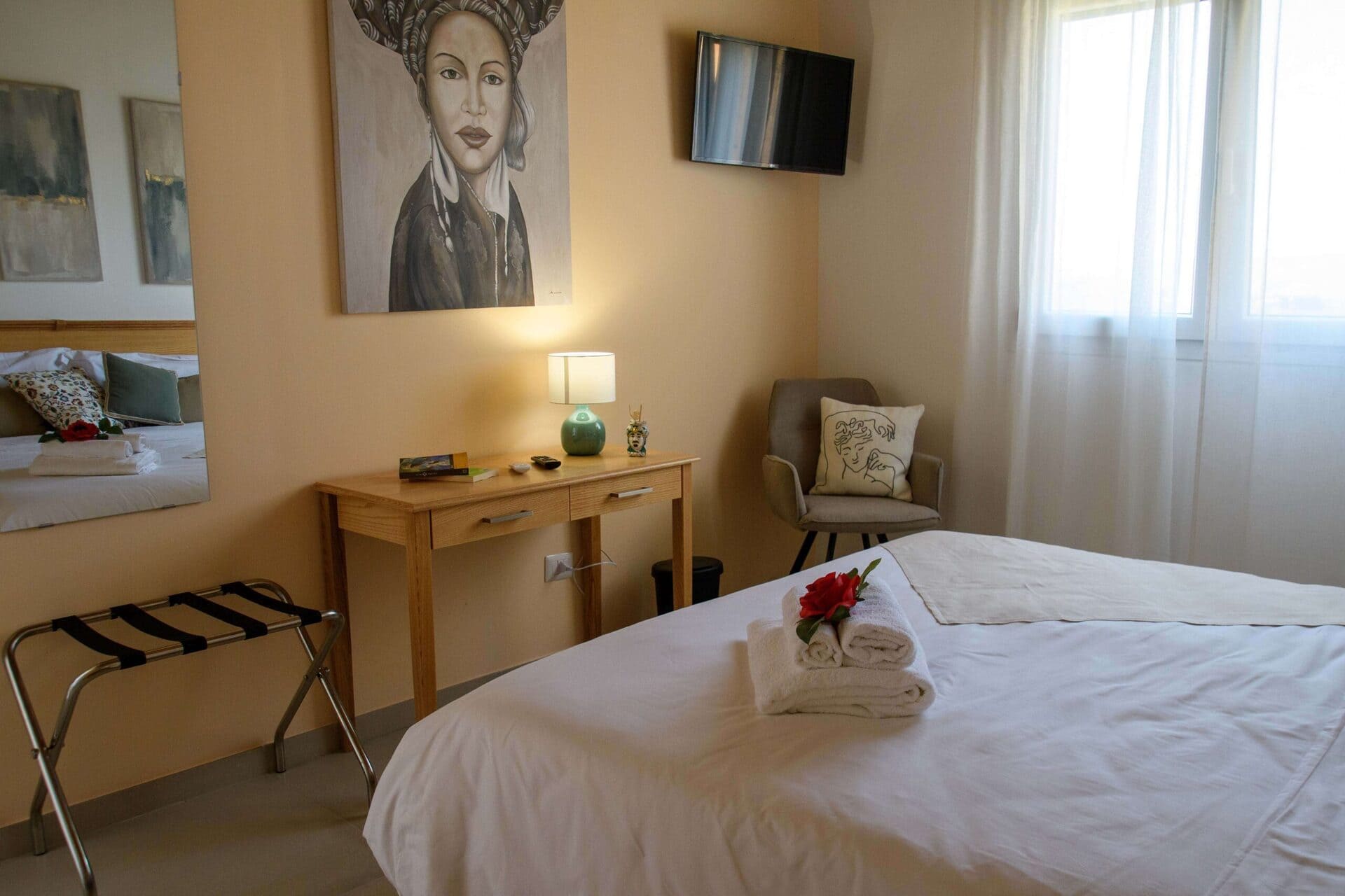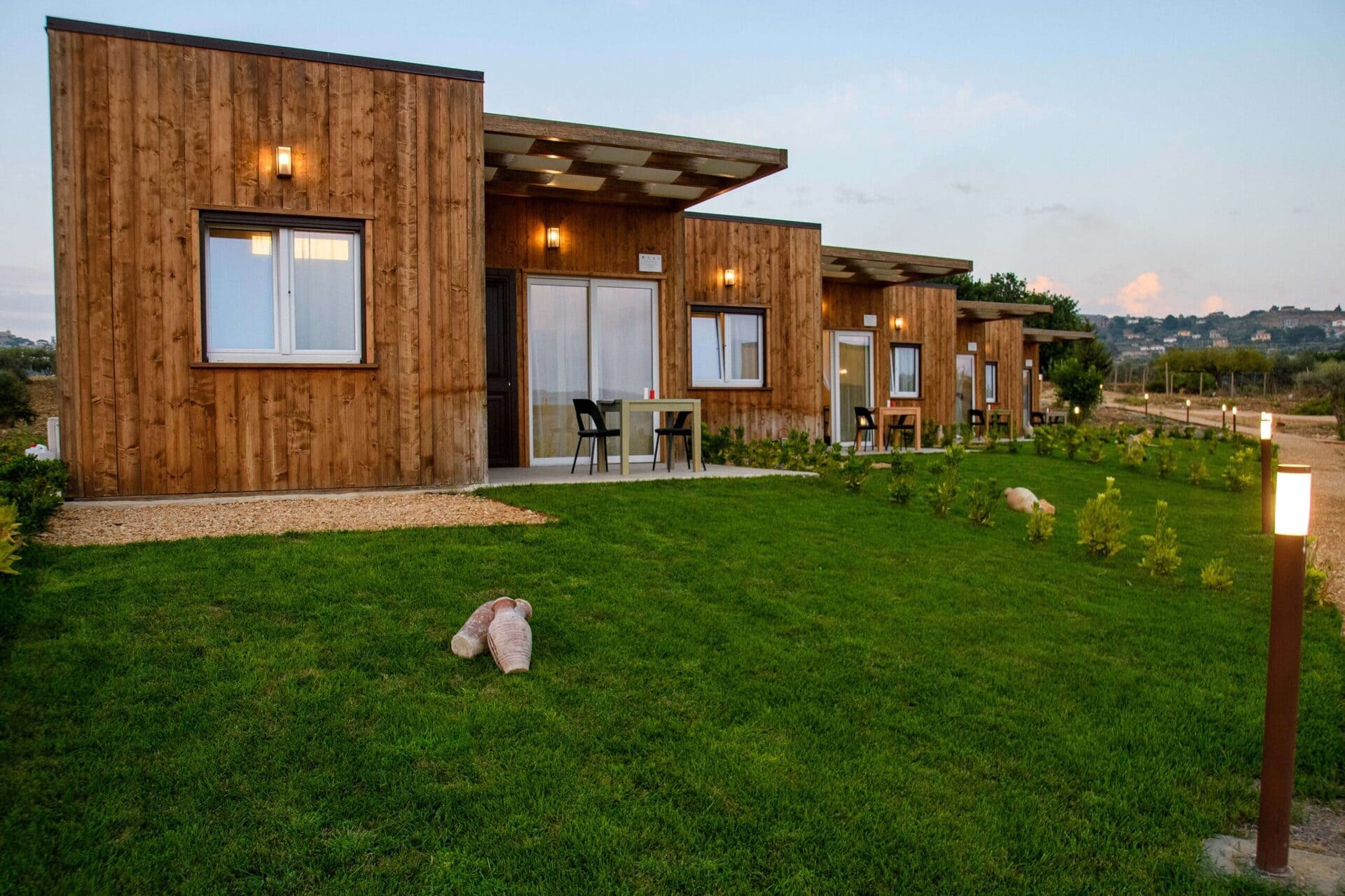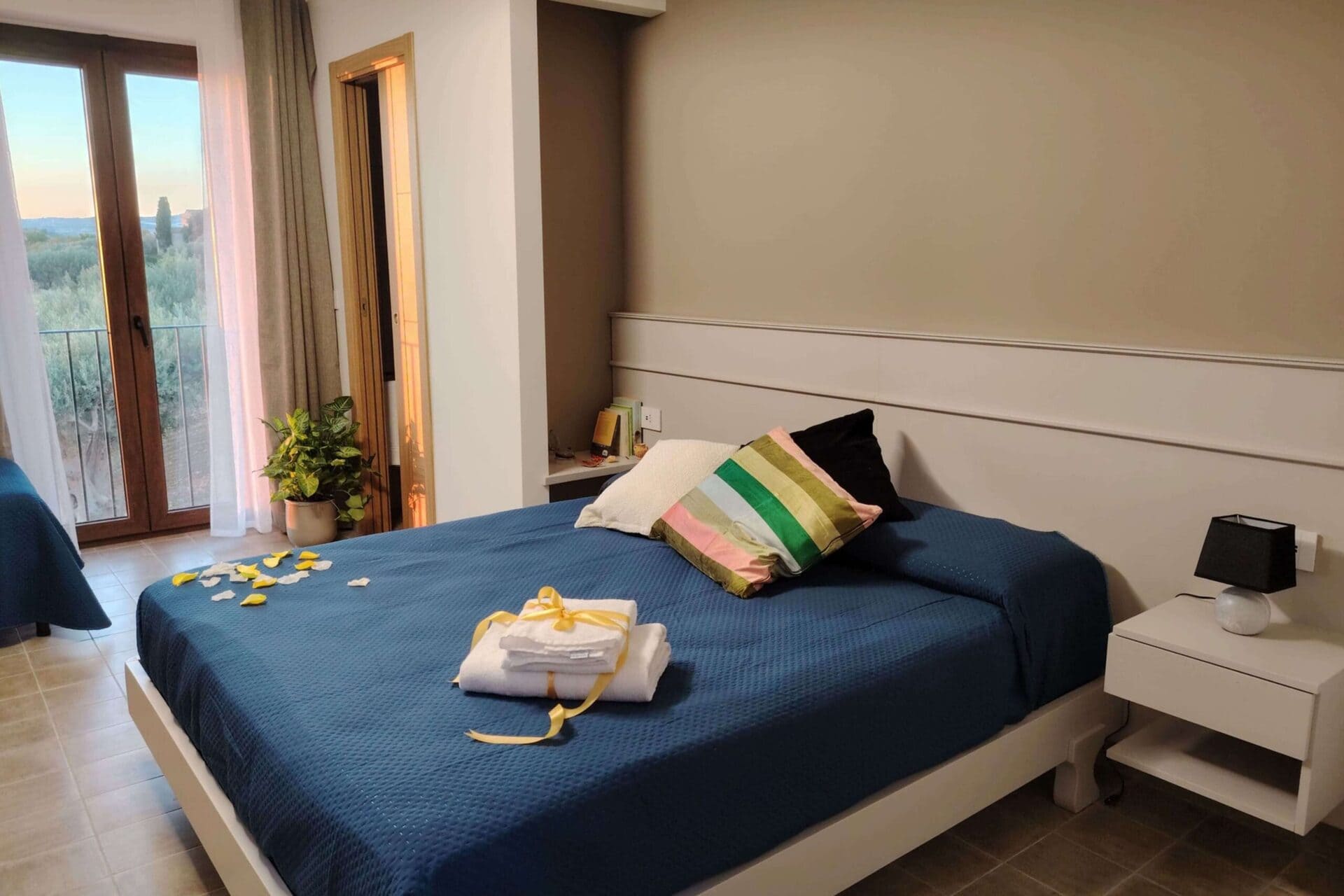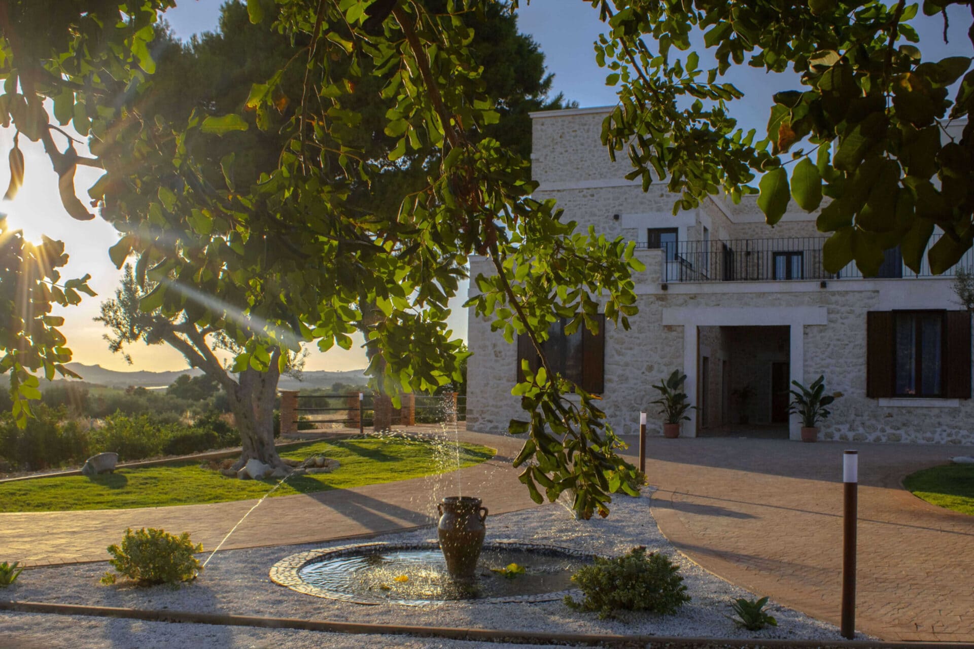 Het Siciliaans landhuis is het kloppende hart van het complex. De kamers zijn ruim en licht, met airconditioning, gratis wifi, een volledig uitgeruste keuken en eigen badkamer. De kamers hebben uitzicht op de tuin, omringd door olijf- en citrusbomen.