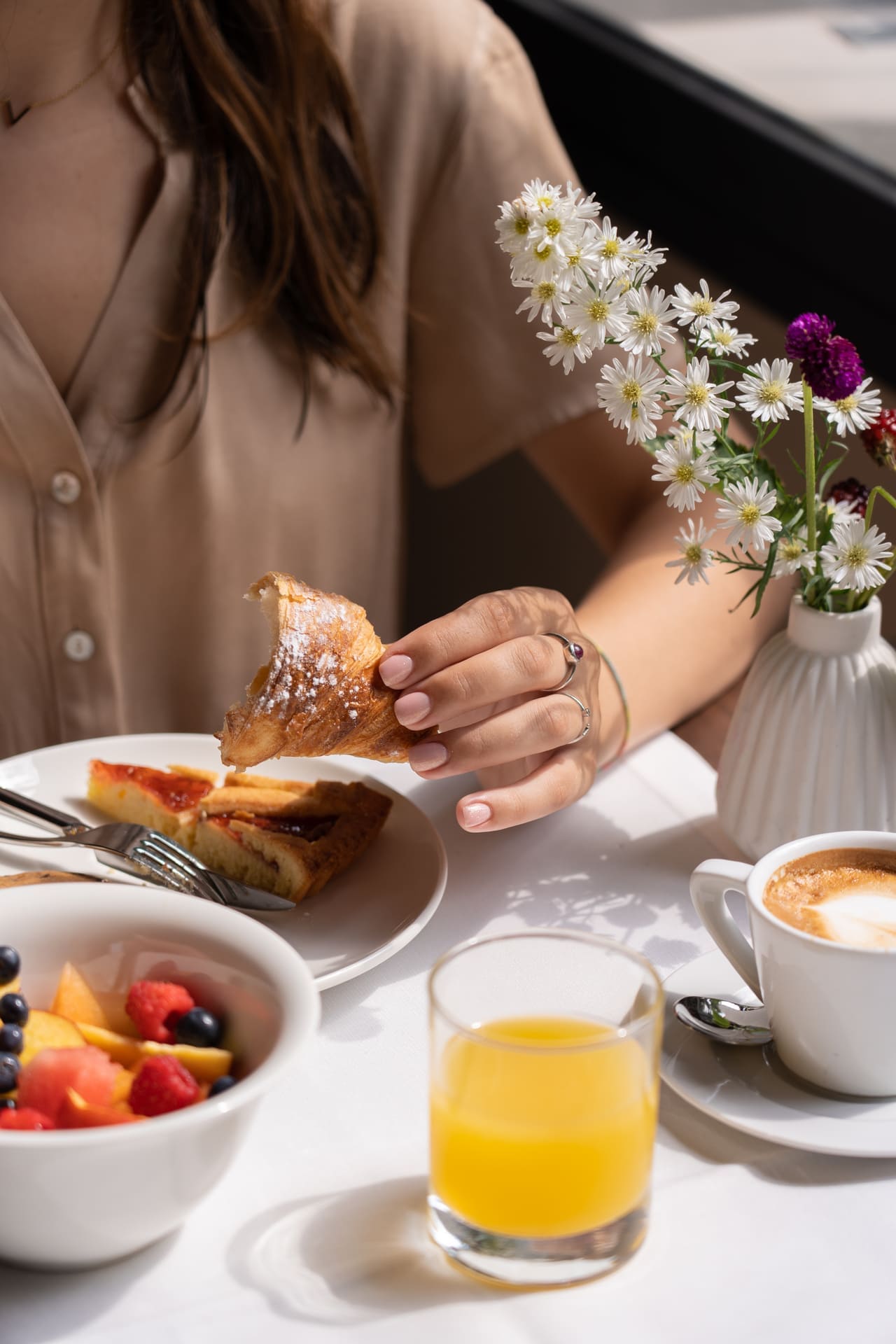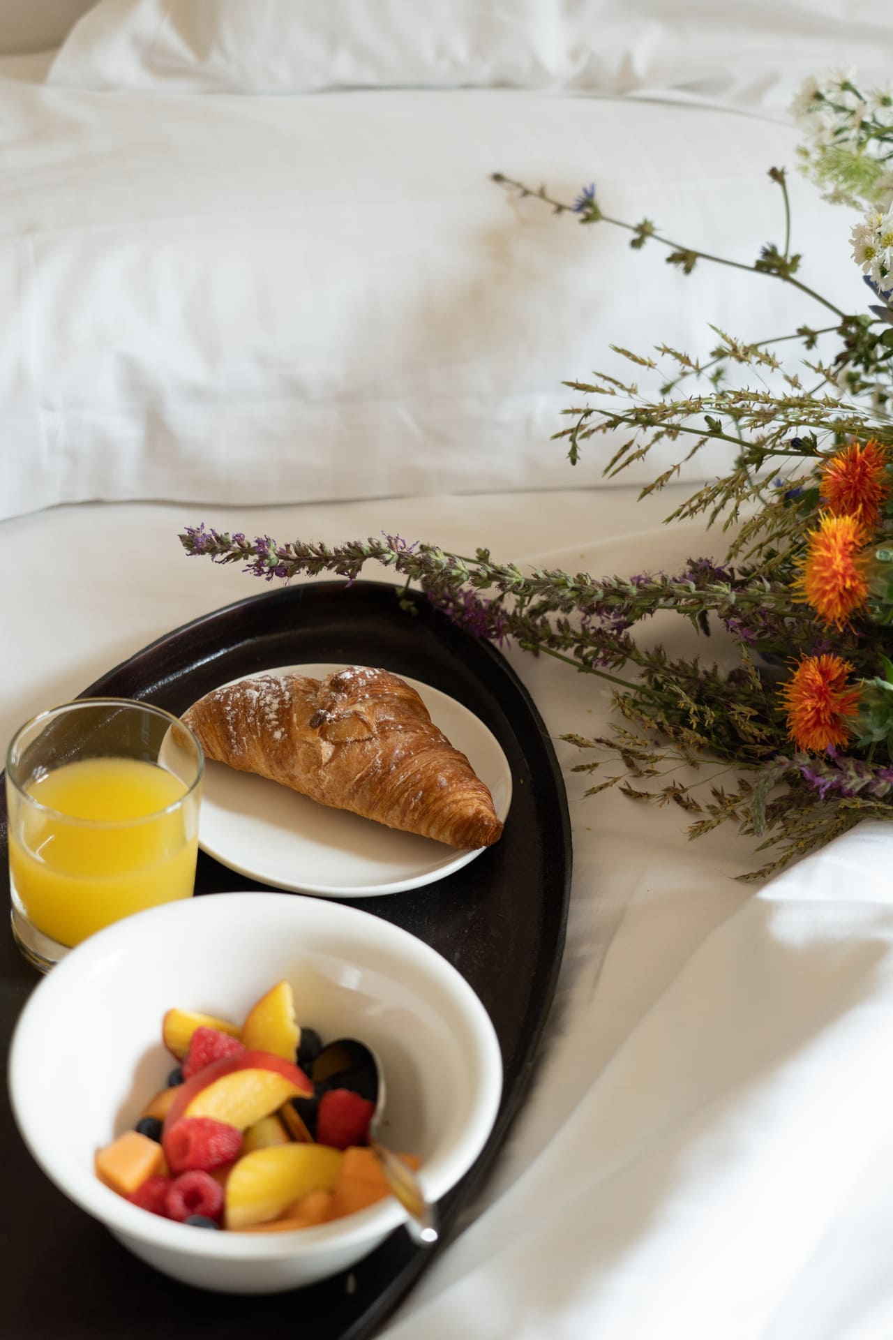 De dag begint met een uitgebreid ontbijtbuffet met biologische en lokale producten. Of je nou houdt van een gezonde start of zwicht voor versgebakken taart: hier start je je dag goed.