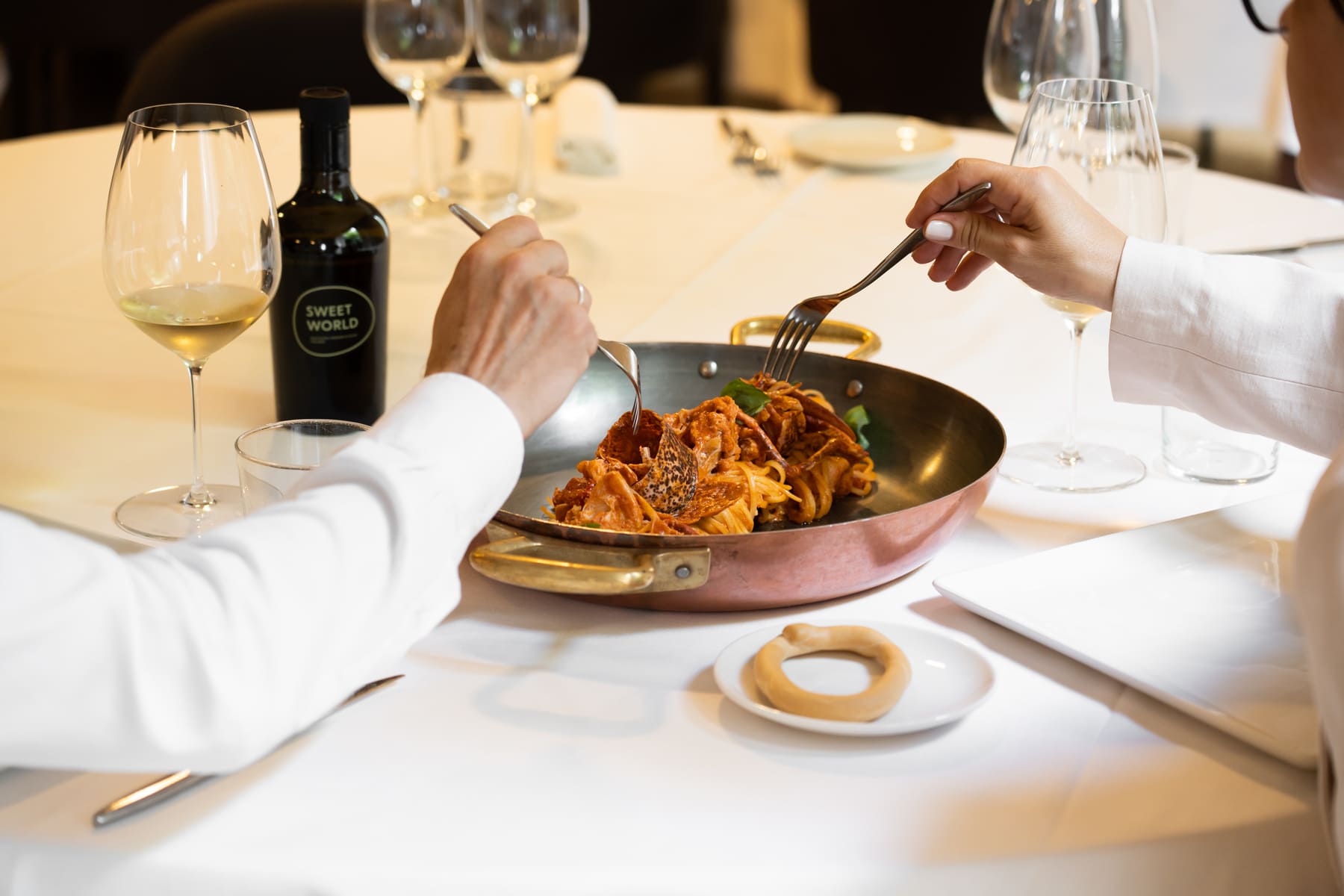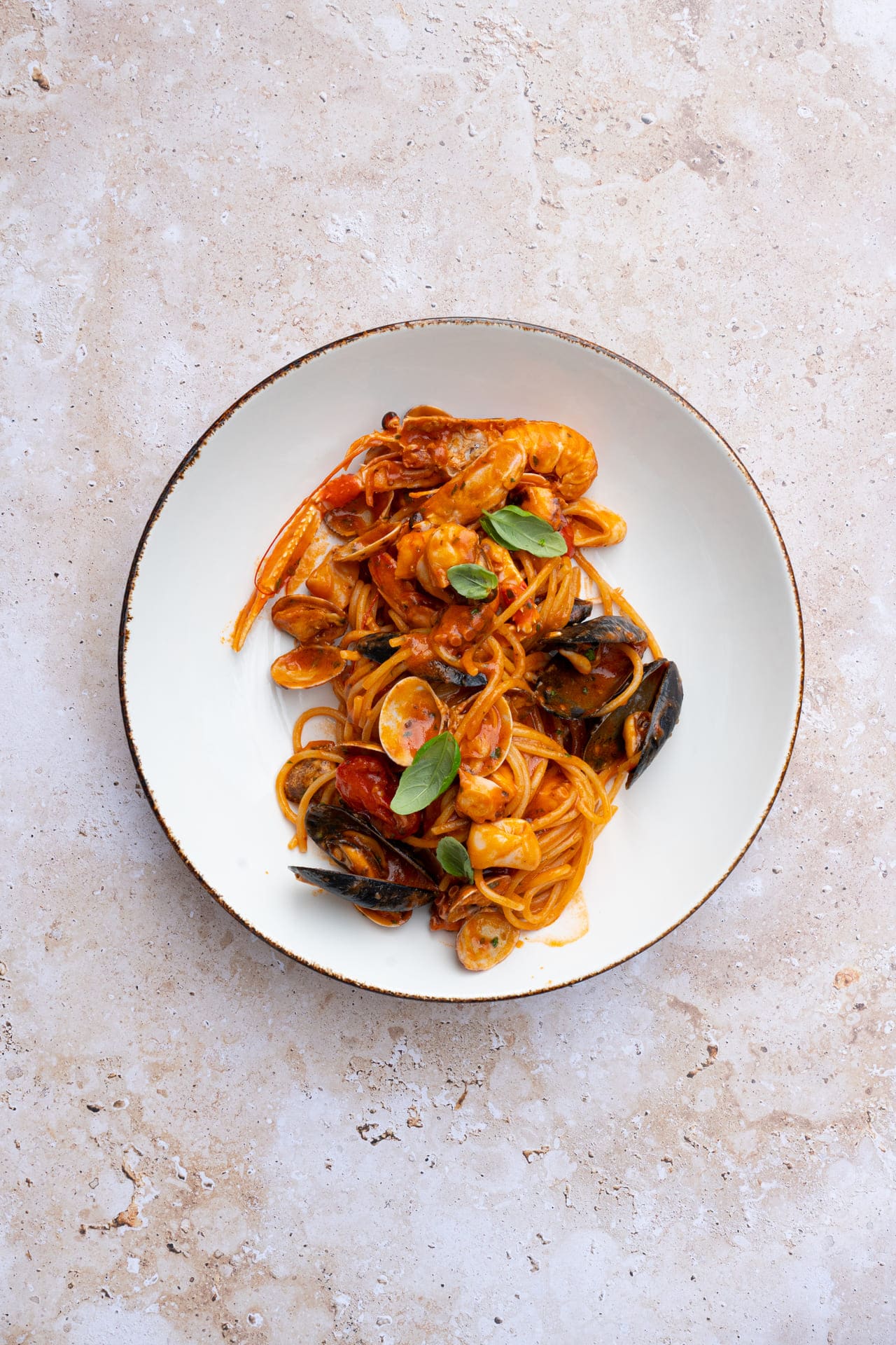 Brasserie Mediterraneo: pizza uit de houtoven, huisgemaakte pasta’s en slow food-specialiteiten zoals DOP Vesuvio-tomaten en Salina-kappertjes
