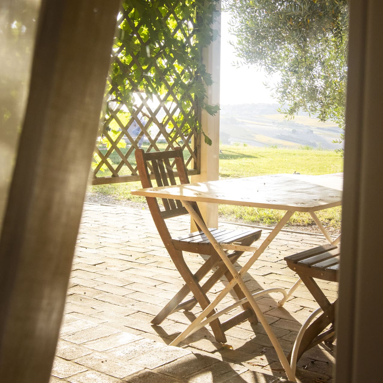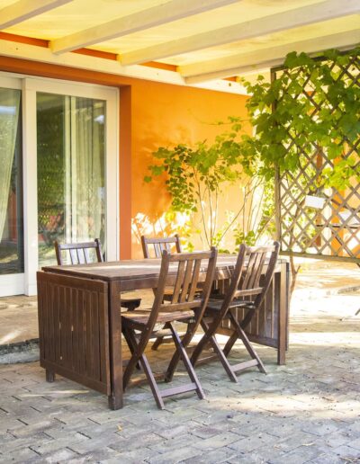 Het voormalige pakhuis – La Rimessa – kijkt uit over de wijngaarden. Het heeft een appartement (Collimare) met eigen jacuzzi en een kamer, beide op de begane grond. Onder de pergola geniet je heerlijk van het buitenleven.