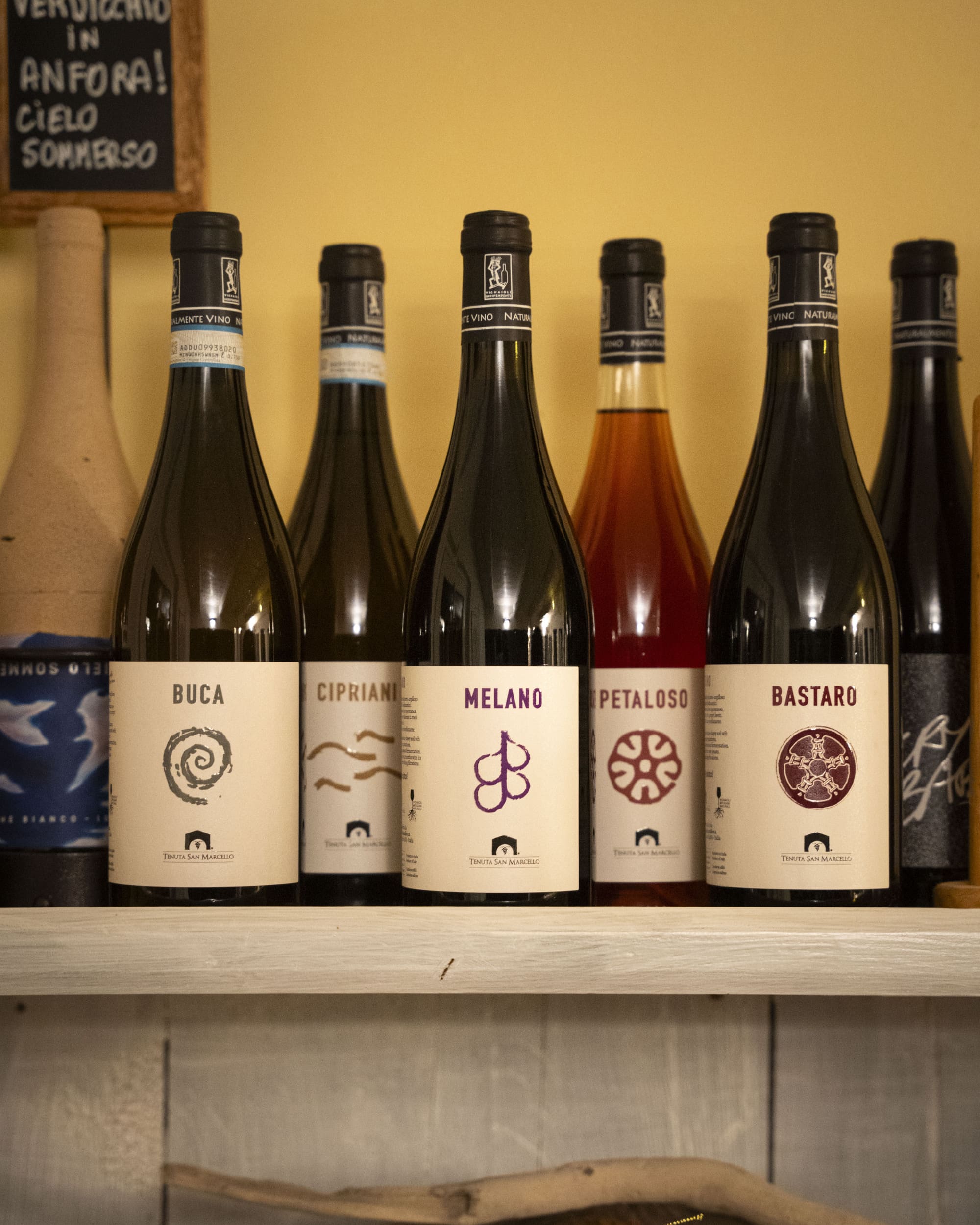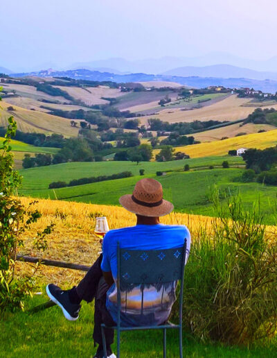 Om deze droom te verwezenlijken, verlieten Pascale en Massimo in 2009 Milaan om zich te vestigen in het groene hart van Le Marche. Ze werden verliefd op het gebied, de mensen en de landelijke cultuur. En bovenal werden ze verliefd op ‘la lacrima di Morro d’Alba’; de rode wijn die alleen hier geproduceerd wordt. Dus verhuisden ze naar San Marcello, in het achterland van Senigallia.