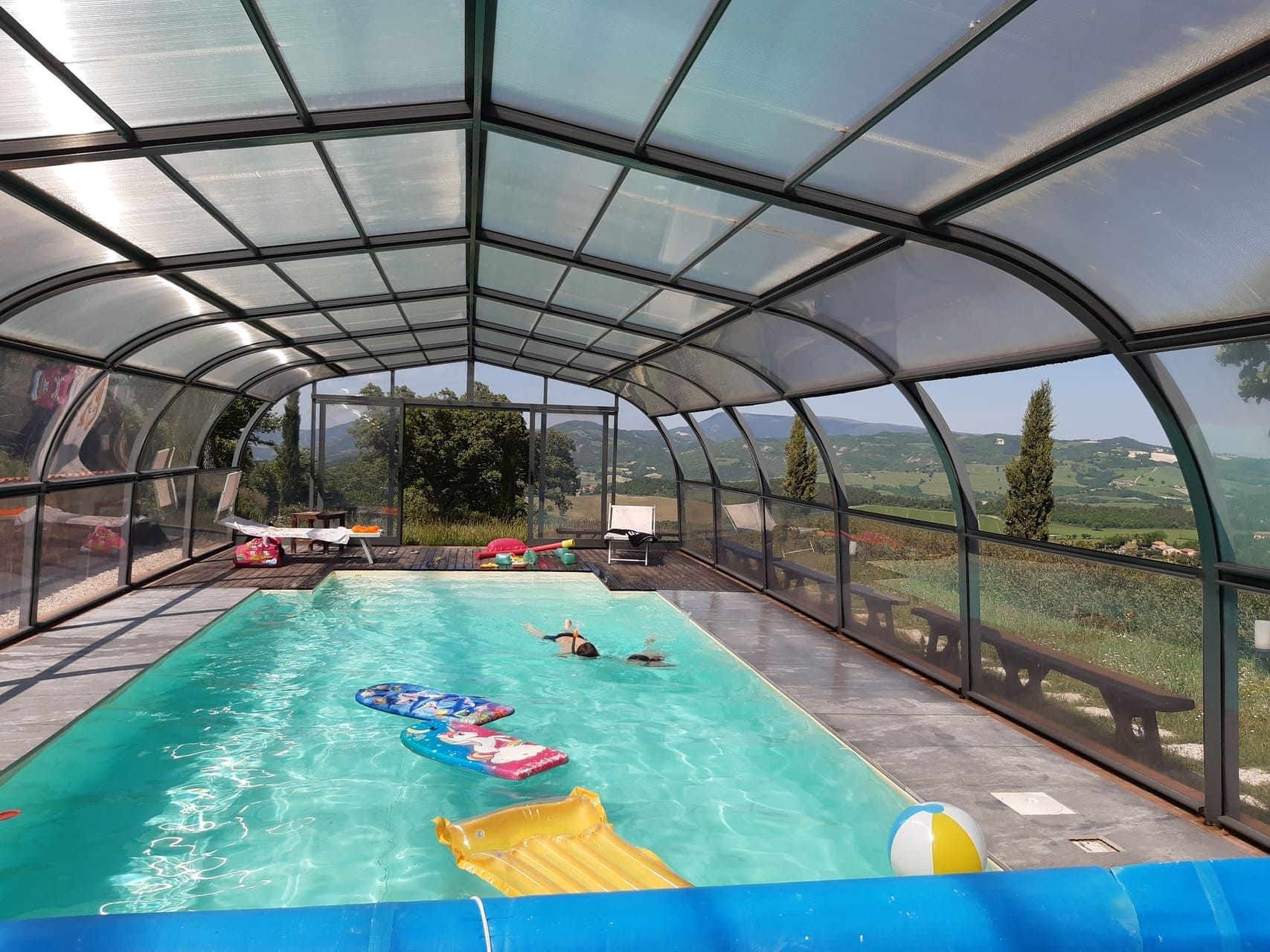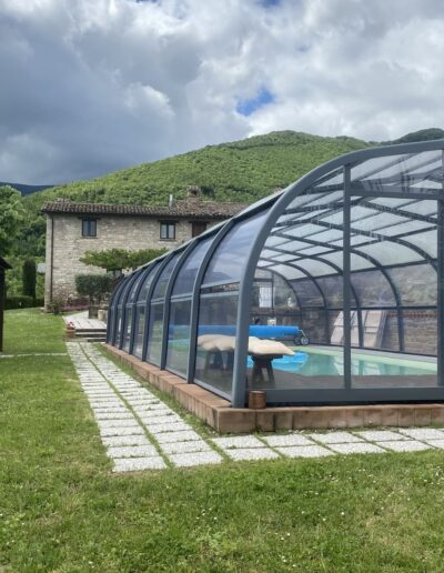 Dat maakt deze agriturismo extra aantrekkelijk in het voor- en najaar na een dag hiken, in de zomer heerlijk afkoelen zonder drukte en zelfs in de winter met het overdekte zwembad.