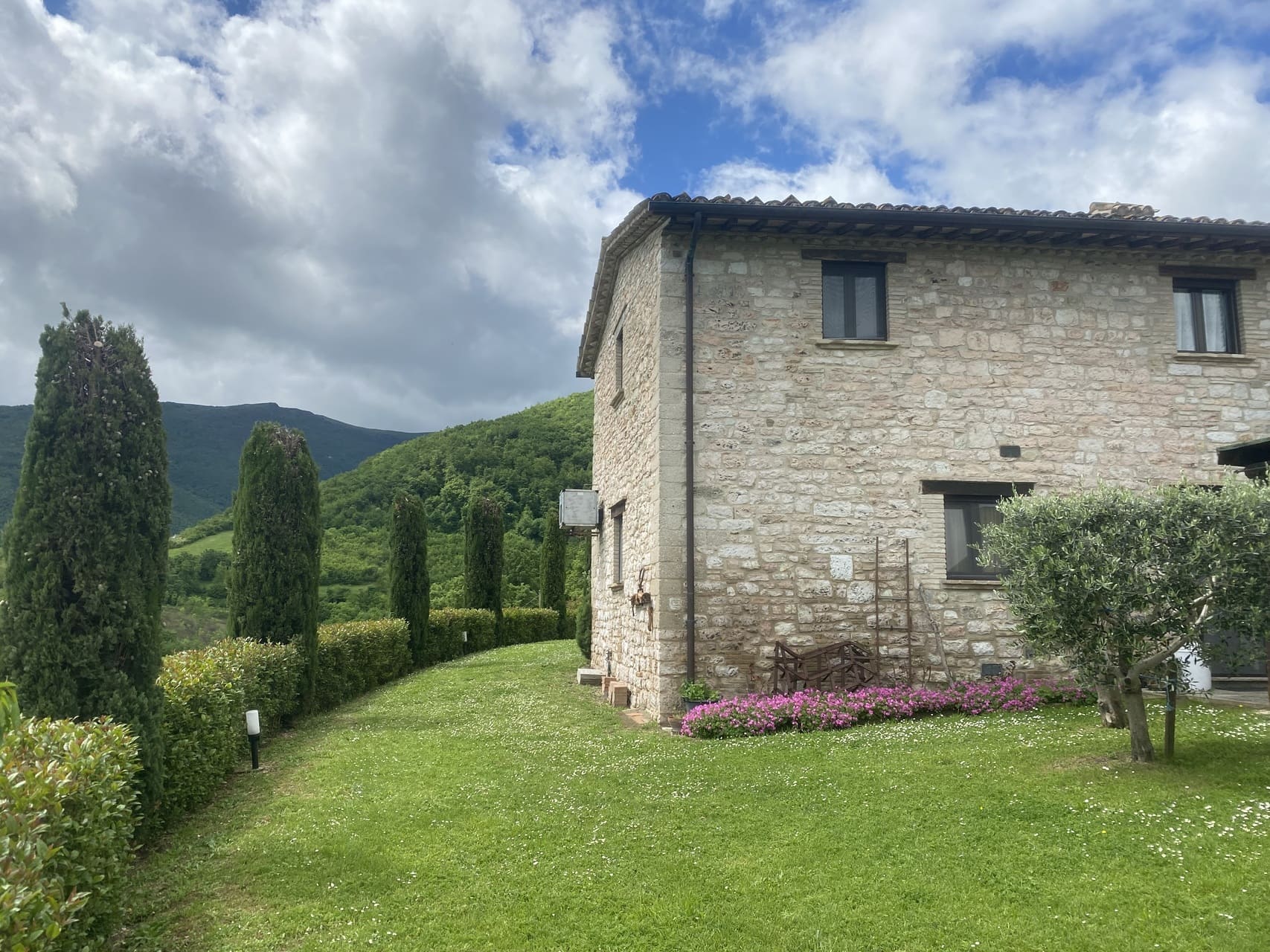 Villa Colticciola agriturismo ligt op ongeveer 500 meter hoogte, op een kleine berg, aan de voet van de Monte Catria. Precies in dat ruige, groene grensgebied tussen Le Marche en Umbrië waar de Apennijnen het landschap tekenen.