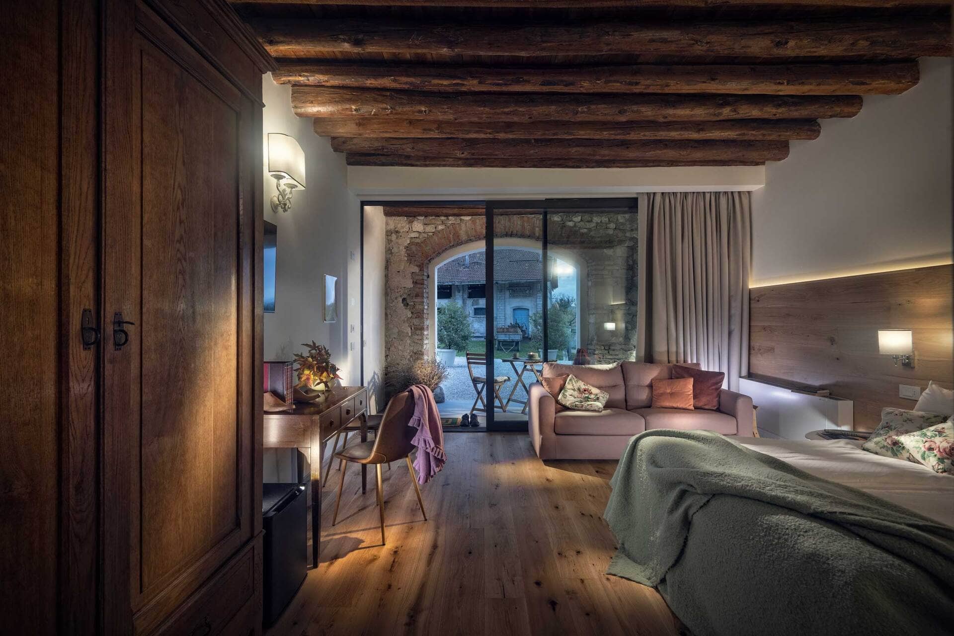 Een gehucht met nog geen honderd inwoners, verscholen in de Valbelluna. De groene vallei tussen Belluno en de Dolomieten. En daar, achter een 18e-eeuwse poort, vind je Villa di Modolo: een 17e-eeuws landhuis, al eeuwenlang in handen van dezelfde adellijke familie, en dat nu de deuren heeft geopend voor reizigers die iets anders zoeken.