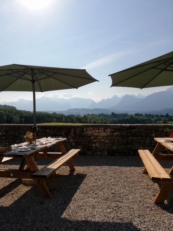 Na een dag wandelen of fietsen wacht het terras met uitzicht op de bergen: een plek met een uitzicht dat je nergens anders ziet. De Dolomieten in al hun grilligheid, opgloeiend in het late middaglicht. Massages zijn op aanvraag te reserveren.