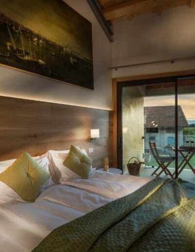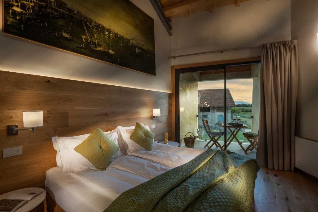 De Superior kamer van het huis: 37 m², 1e verdieping, panoramisch balkon met uitzicht. Exclusief design, benaamd naar de republiek Venetië die deze streek eeuwenlang in haar greep hield.
