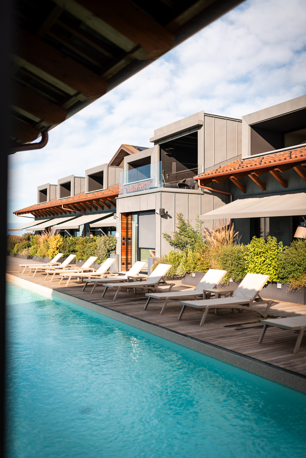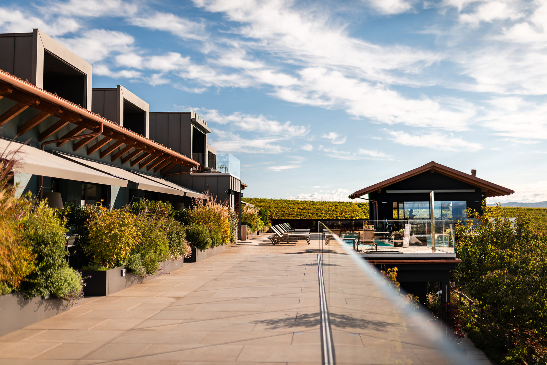 - 6 luxe appartementen voor 2 personen met eigen buitenruimte (terras of balkon), de meeste met uitzicht over de wijngaarden.