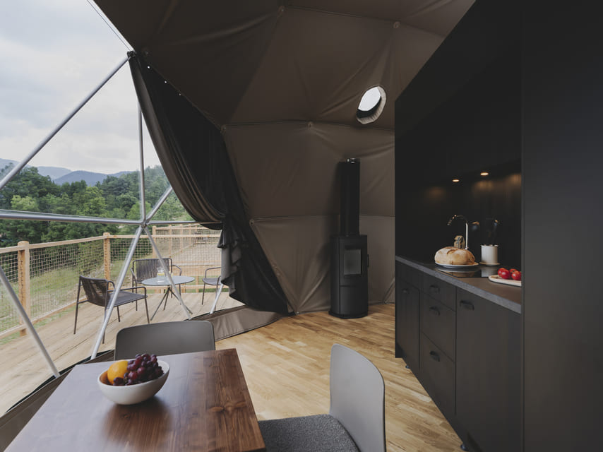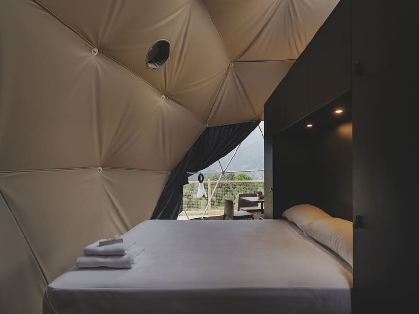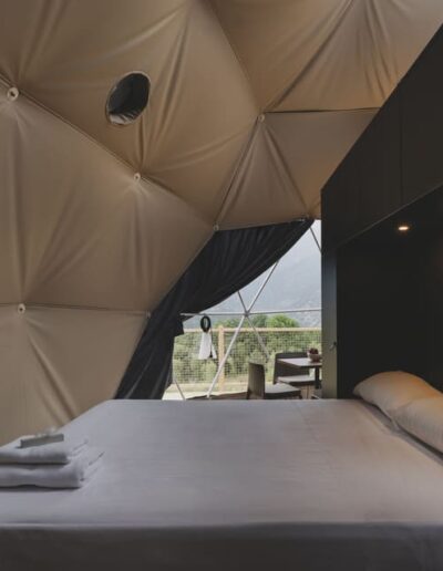 Wecamp Pedraforca biedt verschillende soorten verblijf, van klassieke kampeerplaatsen tot volledig ingerichte glamping-accommodaties. De meest bijzondere optie: de koepeltenten (domes) met panoramisch uitzicht op de Pedraforca en een pellet-haard. Ideaal voor herfst en winter. Maar ook de houten bungalows en mobilhomes zijn goed uitgerust: badkamer, keuken, eigen terras, airconditioning en verwarming.